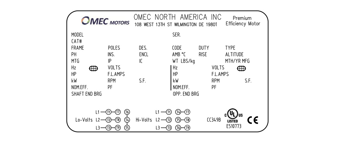 | NEMA TEFC 低压电机 OMN 145T-6 0.75kW 208-230/460V T |